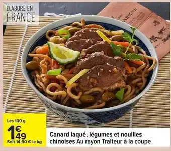 Actuellement en offre chez Carrefour : CANARD LAQUÉ, LÉGUMES ET NOUILLES CHINOISES ✅ Valable du 10-02 au 23-02.