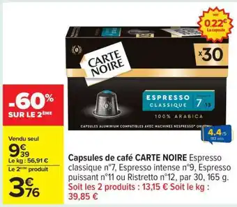 Actuellement en offre chez Carrefour : Capsules De Café Carte Noire ✅ Valable du 17-02 au 2-03.