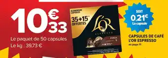 En plus de l'offre Capsules de café L'OR Espresso, Carrefour propose une large gamme de produits. Consultez le Catalogue Carrefour hebdomadaire pour découvrir les meilleures offres et promotions. En plus de Capsules de café L'OR Espresso, il y a aussi : Capsules de café L'OR Espresso, Capsules de café L'OR Espresso & Capsules de café espresso splendente l'or.