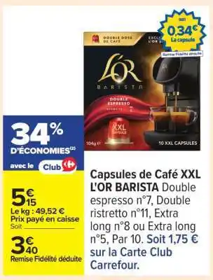 Offre Capsules de café XXL L'OR BARISTA chez Carrefour