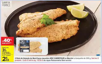 CARREFOUR 2 filets de limande du Nord façon meunière MSC Le Marché offres et promotions en ligne chez Carrefour