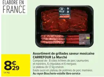 Actuellement en offre chez Carrefour : CARREFOUR Assortiment de grillades saveur mexicaine ✅ Valable du 28-04 au 11-05.