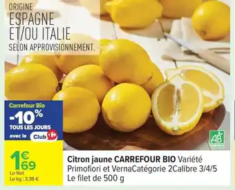 CARREFOUR BIO Citron jaune : offres et promos Carrefour à découvrir