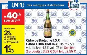 Carrefour - cidre de bretagne i.g.p. original : offres et promos Carrefour à découvrir