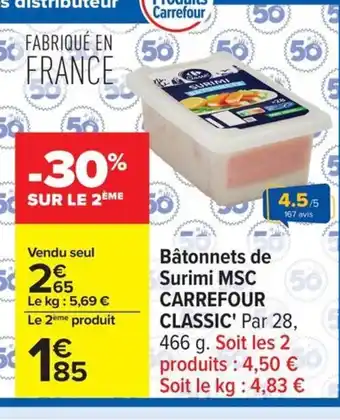 Offre CARREFOUR CLASSIC Bâtonnets de Surimi MSC chez Carrefour