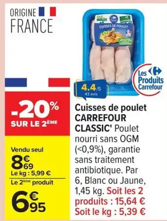 CARREFOUR CLASSIC Cuisses de poulet offres et promotions en ligne chez Carrefour