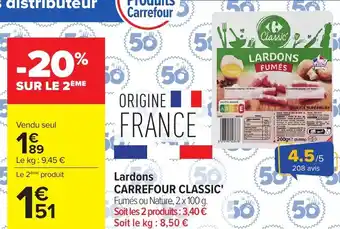 En plus de l'offre CARREFOUR CLASSIC Lardons, Carrefour propose une large gamme de produits. Consultez le Catalogue Carrefour hebdomadaire pour découvrir les meilleures offres et promotions. En plus de CARREFOUR CLASSIC Lardons, il y a aussi : Carrefour classic' lardons, CARREFOUR CLASSIC' Lardons & Carrefour classic' lardons.