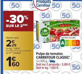 Actuellement en offre chez Carrefour : CARREFOUR CLASSIC Pulpe de tomates ✅ Valable du 3-02 au 16-02.