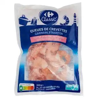 Carrefour classic' queues de crevettes asc cuites semi-décortiquées surgelées