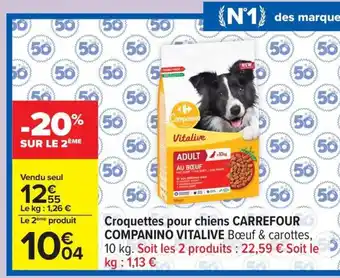 Offre CARREFOUR COMPANINO VITALIVE Croquettes pour chiens chez Carrefour