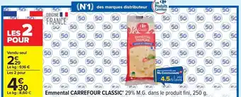 Offre Carrefour - emmental classic' 29% m.g. dans le produit fini chez Carrefour