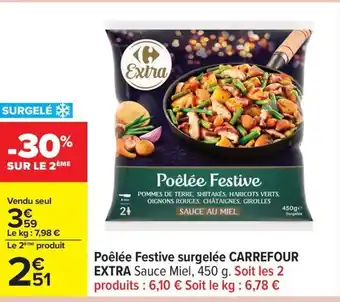 En plus de l'offre CARREFOUR EXTRA Poêlée Festive surgelée, Carrefour propose une large gamme de produits. Consultez le Catalogue Carrefour hebdomadaire pour découvrir les meilleures offres et promotions. En plus de CARREFOUR EXTRA Poêlée Festive surgelée, il y a aussi : Carrefour extra poêlée festive surgelées, CARREFOUR EXTRA Bûche glacée façon Festive Rocher & Carrefour sensation pizza surgelée.