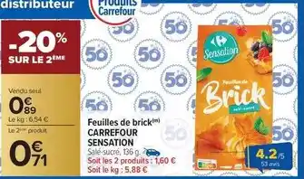 En plus de l'offre Carrefour - feuilles de brick sensation, Carrefour propose une large gamme de produits. Consultez le Catalogue Carrefour hebdomadaire pour découvrir les meilleures offres et promotions. En plus de Carrefour - feuilles de brick sensation, il y a aussi : Carrefour - feuilles de brick sensation, Feuilles de Brick CARREFOUR SENSATION & CARREFOUR SENSATION Feuilles de brick.
