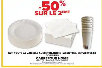 CARREFOUR HOME Sur toute la vaiselle a jeter blanche: assiettes, serviettes et gobelets offres et promotions en ligne chez Carrefour