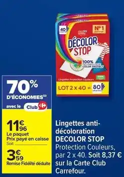 Offre Carrefour - lingettes anti- décoloration chez Carrefour