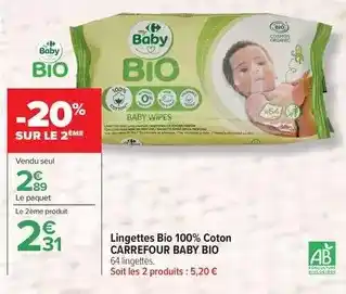 Actuellement en offre chez Carrefour : Carrefour - lingettes bio 100% coton ✅ Valable du 2-03 au 15-03.