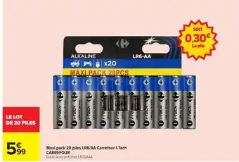 CARREFOUR Maxi pack 20 piles LR6/AA Carrefour I-Tech offres et promotions en ligne chez Carrefour