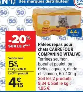 Offre Carrefour - pâtées repas pour chats companino vitalive chez Carrefour