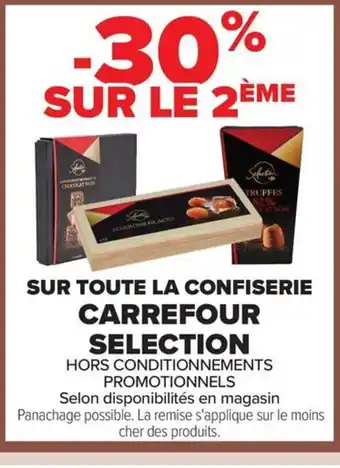 Actuellement en offre chez Carrefour : CARREFOUR SELECTION Sur toute la confiserie ✅ Valable du 9-12 au 24-12.