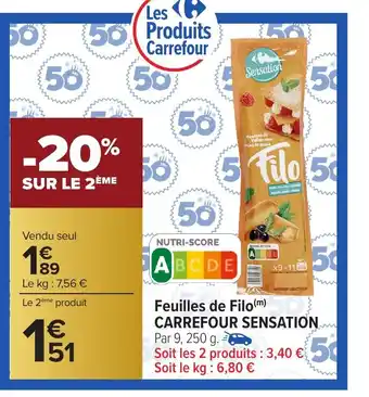 Actuellement en offre chez Carrefour : CARREFOUR SENSATION Feuilles de Filo ✅ Valable du 3-02 au 16-02.