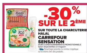 Offre CARREFOUR SENSATION Sur toute la charcuterie halal chez Carrefour