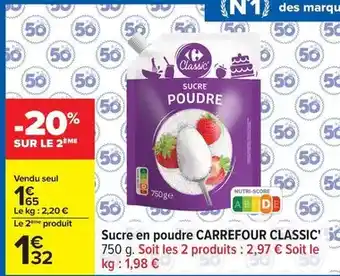 Actuellement en offre chez Carrefour : Carrefour - sucre en poudre classic ✅ Valable du 20-01 au 2-02.