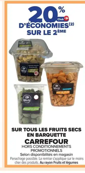 Offre CARREFOUR Sur tous les fruits secs en barquette chez Carrefour