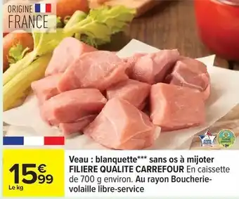 Offre Carrefour - veau: blanquette sans os à mijoter filiere qualite chez Carrefour