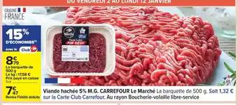 Actuellement en offre chez Carrefour : CARREFOUR Viande hachée 5% M.G. ✅ Valable du 29-12 au 12-01.