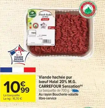 CARREFOUR Viande hachée pur bœuf Halal 20% M.G. offres et promotions en ligne chez Carrefour