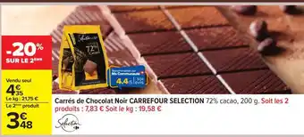 Offre Carrés de Chocolat Noir CARREFOUR SELECTION 72% cacao chez Carrefour