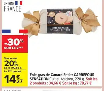 CARRFOUR SENSATION Foie gras de Canard Entier : offres et promos Carrefour à découvrir