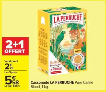 Actuellement en offre chez Carrefour : Cassonade LA PERRUCHE Pure Canne Blond, 1 kg ✅ Valable du 20-01 au 2-02.