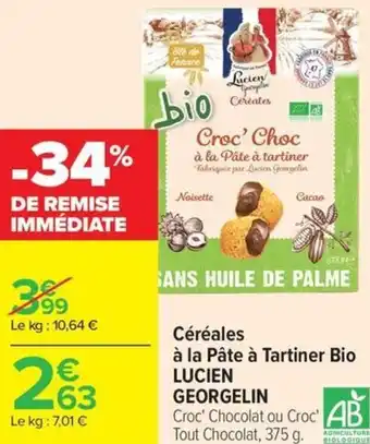 Y a-t-il une promotion sur Céréales à la Pâte à tartiner Bio LUCIEN GEORGELIN la semaine prochaine chez Carrefour ?