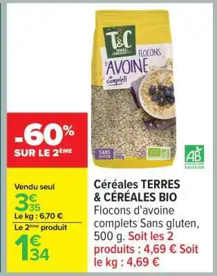 Actuellement en offre chez Carrefour : Céréales TERRES & CÉRÉALES BIO ✅ Valable du 13-01 au 26-01.