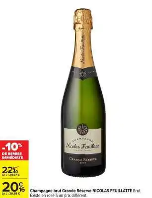 CHAMPAGNE BRUT GRANDE RÉSERVE NICOLAS FEUILLATTE offres et promotions en ligne chez Carrefour