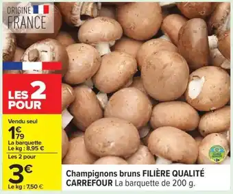 Actuellement en offre chez Carrefour : Champignons bruns FILIÈRE QUALITÉ CARREFOUR ✅ Valable du 17-03 au 30-03.