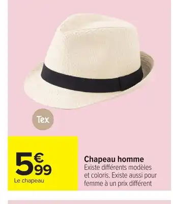 Actuellement en offre chez Carrefour : Chapeau homme ✅ Valable du 21-04 au 4-05.