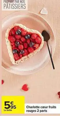 Offre Charlotte cœur fruits rouges 2 parts chez Carrefour