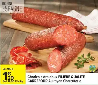 Chorizo extra doux filiere qualite carrefour offres et promotions en ligne chez Carrefour