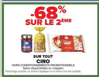 En plus de l'offre CIRO Sur tout, Carrefour propose une large gamme de produits. Consultez le Catalogue Carrefour hebdomadaire pour découvrir les meilleures offres et promotions. En plus de CIRO Sur tout, il y a aussi : Panettone CIRO, Pinsa Ciro & CIRO Pinsa classique.