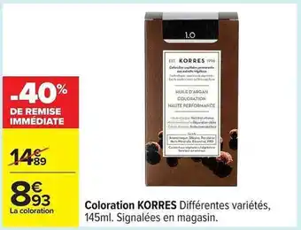 Actuellement en offre chez Carrefour : Coloration KORRES ✅ Valable du 10-02 au 23-02.
