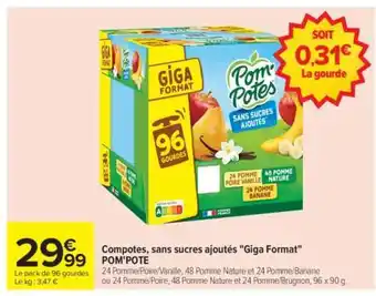 Y a-t-il une promotion sur Compotes, sans sucres ajoutés Giga Format POM'POTE la semaine prochaine chez Carrefour ?