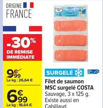COSTA Filet de saumon MSC surgelé offres et promotions en ligne chez Carrefour