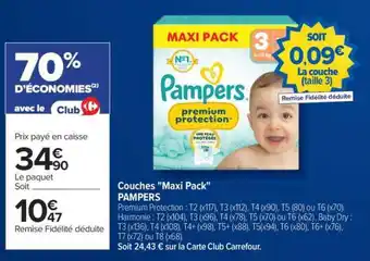 Couches Maxi pack PAMPERS offres et promotions en ligne chez Carrefour