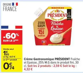 Crème Gastronomique PRÉSIDENT Fraîche et Epaisse : offres et promos Carrefour à découvrir