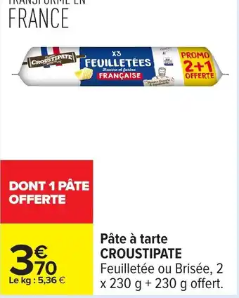 Offre CROUSTIPATE Pâte à tarte chez Carrefour