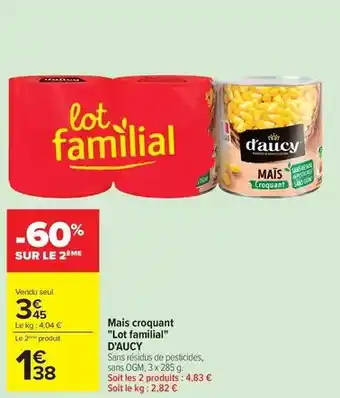 D'aucy - mais croquant lot familial : offres et promos Carrefour à découvrir