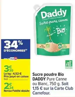 Actuellement en offre chez Carrefour : Daddy - sucre poudre bio ✅ Valable du 10-02 au 23-02.