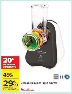En plus de l'offre Découpe légumes Fresh express, Carrefour propose une large gamme de produits. Consultez le Catalogue Carrefour hebdomadaire pour découvrir les meilleures offres et promotions. En plus de Découpe légumes Fresh express, il y a aussi : Découpe légumes fresh express, Moulinex - découpe légumes fresh express & Moulinex découpe légumes fresh express.
